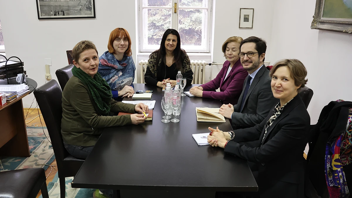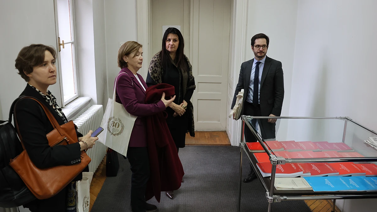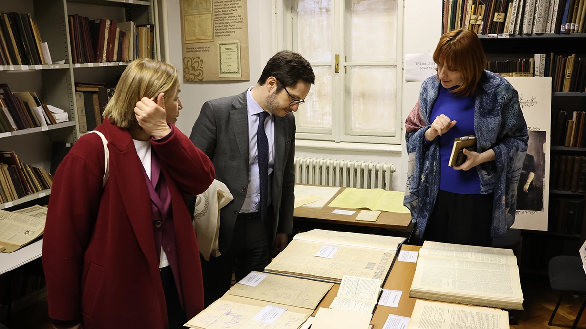 Razgovarali smo o trenutnoj finansijskoj i pravnoj situaciji u Nacionalnoj i univerzitetskoj biblioteci Bosne i Hercegovine. Naši gosti su pogledali dijelove kolekcija Stare periodike i Specijalnih zbirki - nacionalnog spomenika Bosne i Hercegovine. Istaknuto je da svi državljani Bosne i Hercegovine i osobe koje su porijeklom iz naše zemlje mogu biti ponosni na neprocjenjivu građu koju osamdeset godina kontinuirano prikuplja i promovira jedna od ključnih državnih institucija kulture Bosne i Hercegovine - Nacionalna i univerzitetska biblioteka Bosne i Hercegovine.