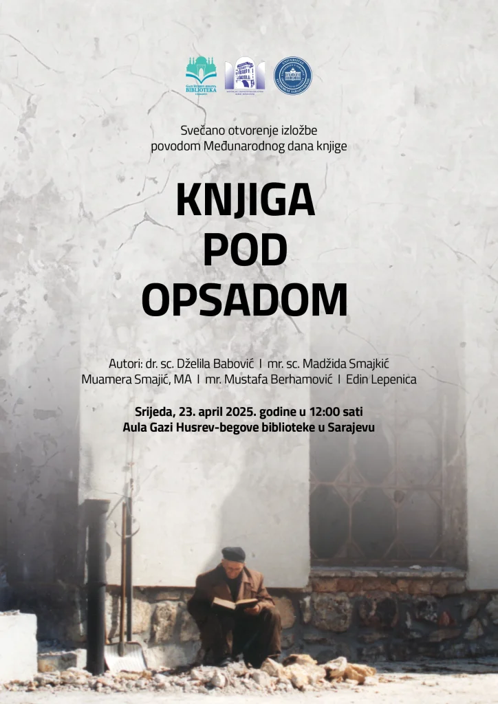 Sa velikim poštovanjem prema kulturnom naslijeđu Bosne i Hercegovine, pozivamo Vas na svečano otvorenje izložbe “Knjiga pod opsadom” koje će biti održano u srijedu 23.4.2025. godine u 12:00 sati u auli Gazi Husrev-begove biblioteke u Sarajevu.