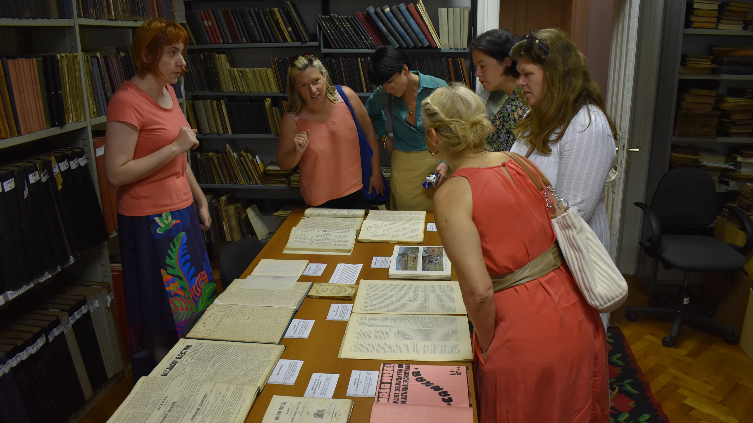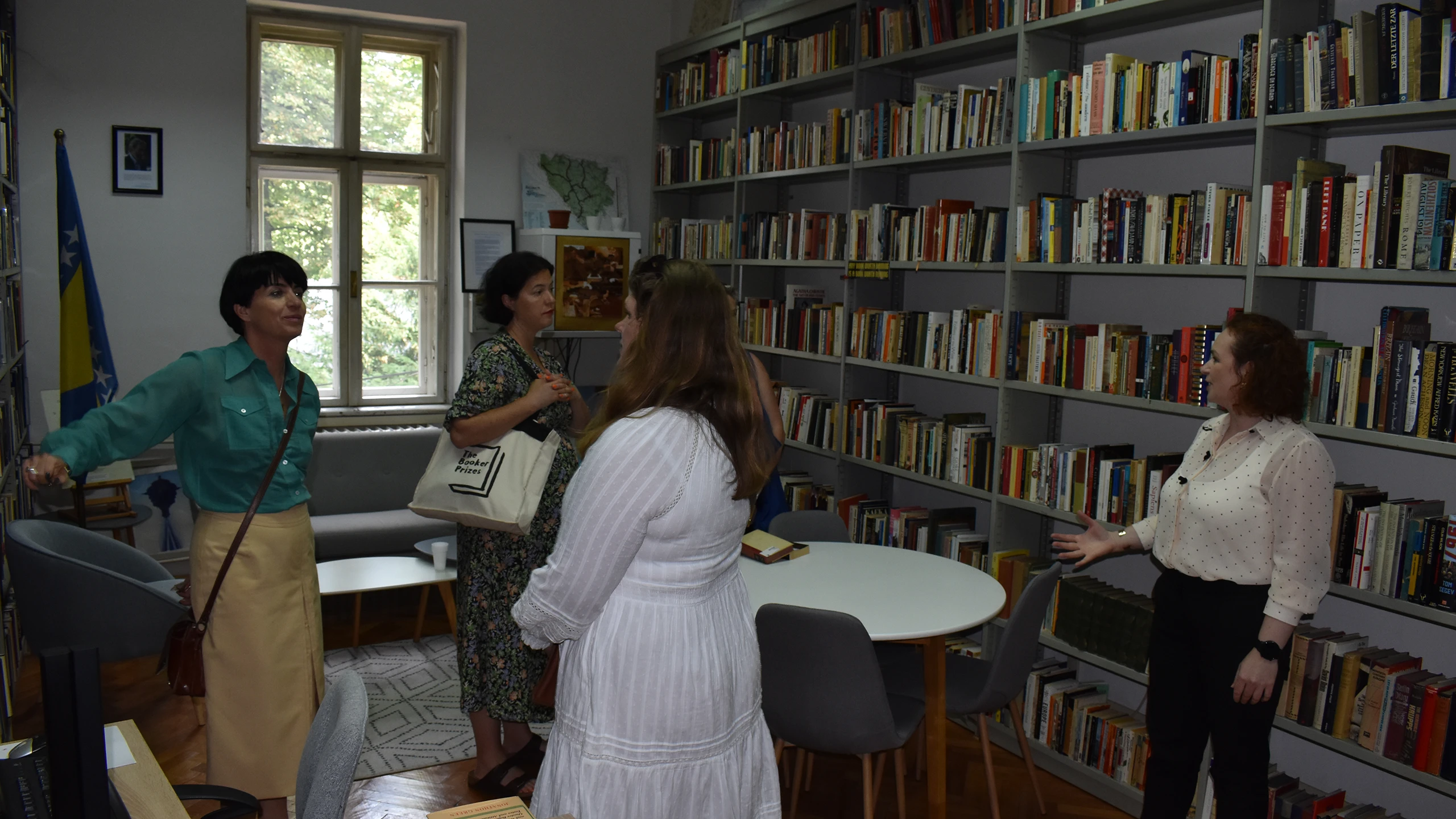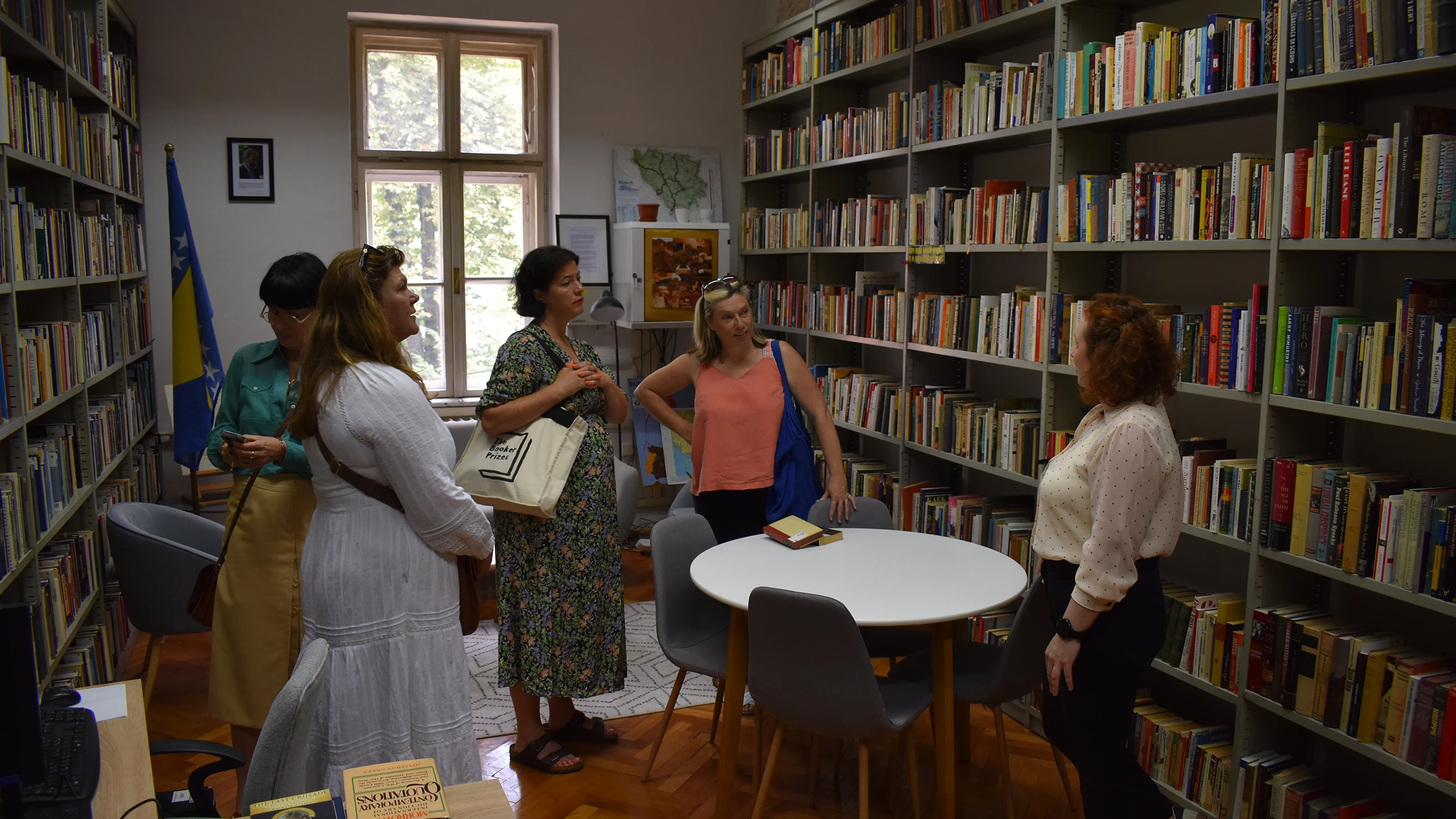 U okviru Programa „Sarajevo Fellowship“ u čijem fokusu je Nacionalna i univerzitetska biblioteka Bosne i Hercegovine, u petak, 20.06.2025. godine, posjetile su nas predstavnice britanskih izdavačkih kuća i agencija: Louisa Joyner (Faber), Sophie Lambert (c+w), Rebecca Servadio (London Literay), Katie Espiner (Hachette UK). Gošće su obišle Specijalne zbirke, nacionalni spomenik Bosne i Hercegovine koji je integralni dio Nacionalne i univerzitetske biblioteke Bosne i Hercegovine, odjele periodike i kataloga te Centar za konzervaciju i restauraciju.