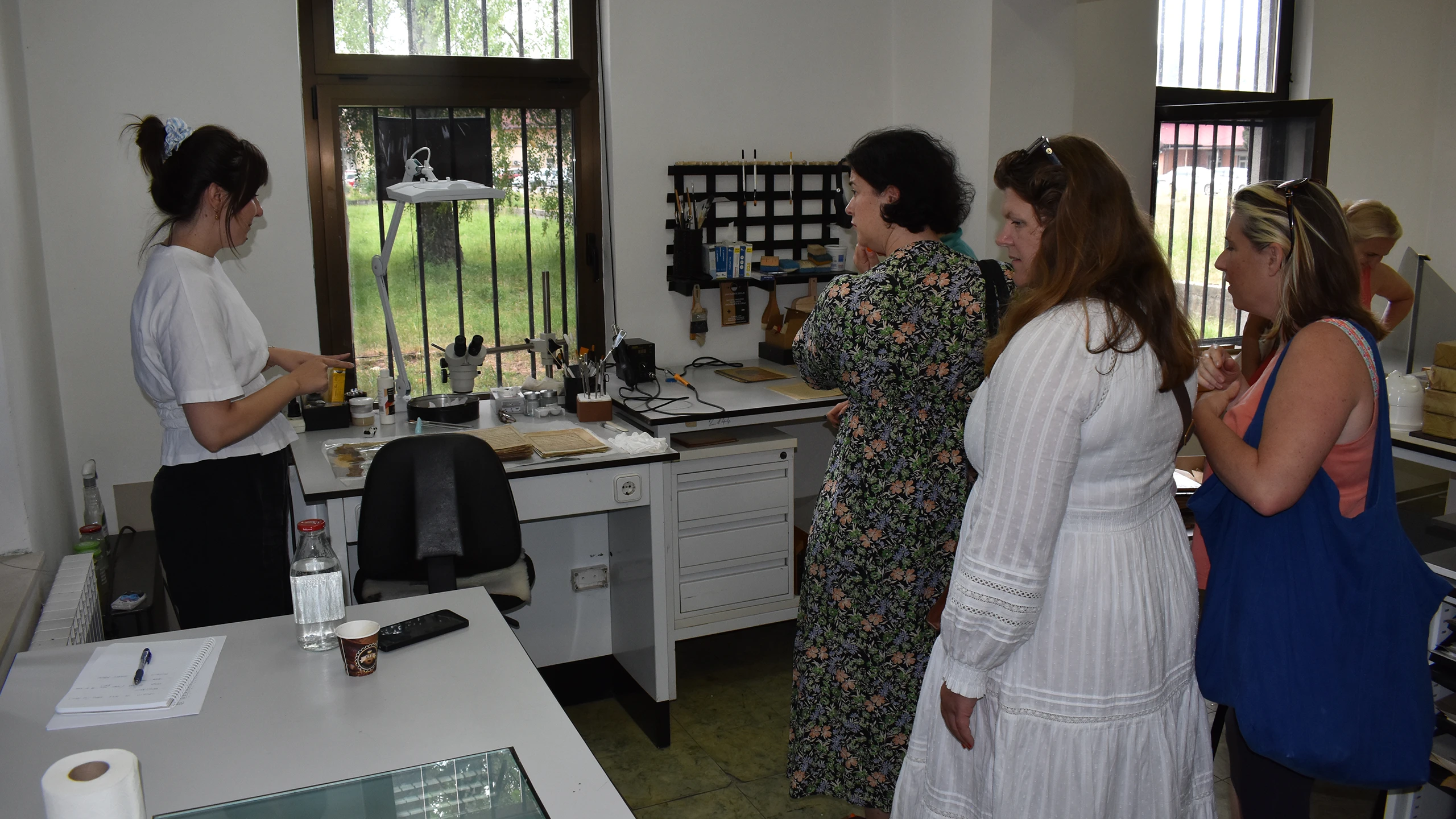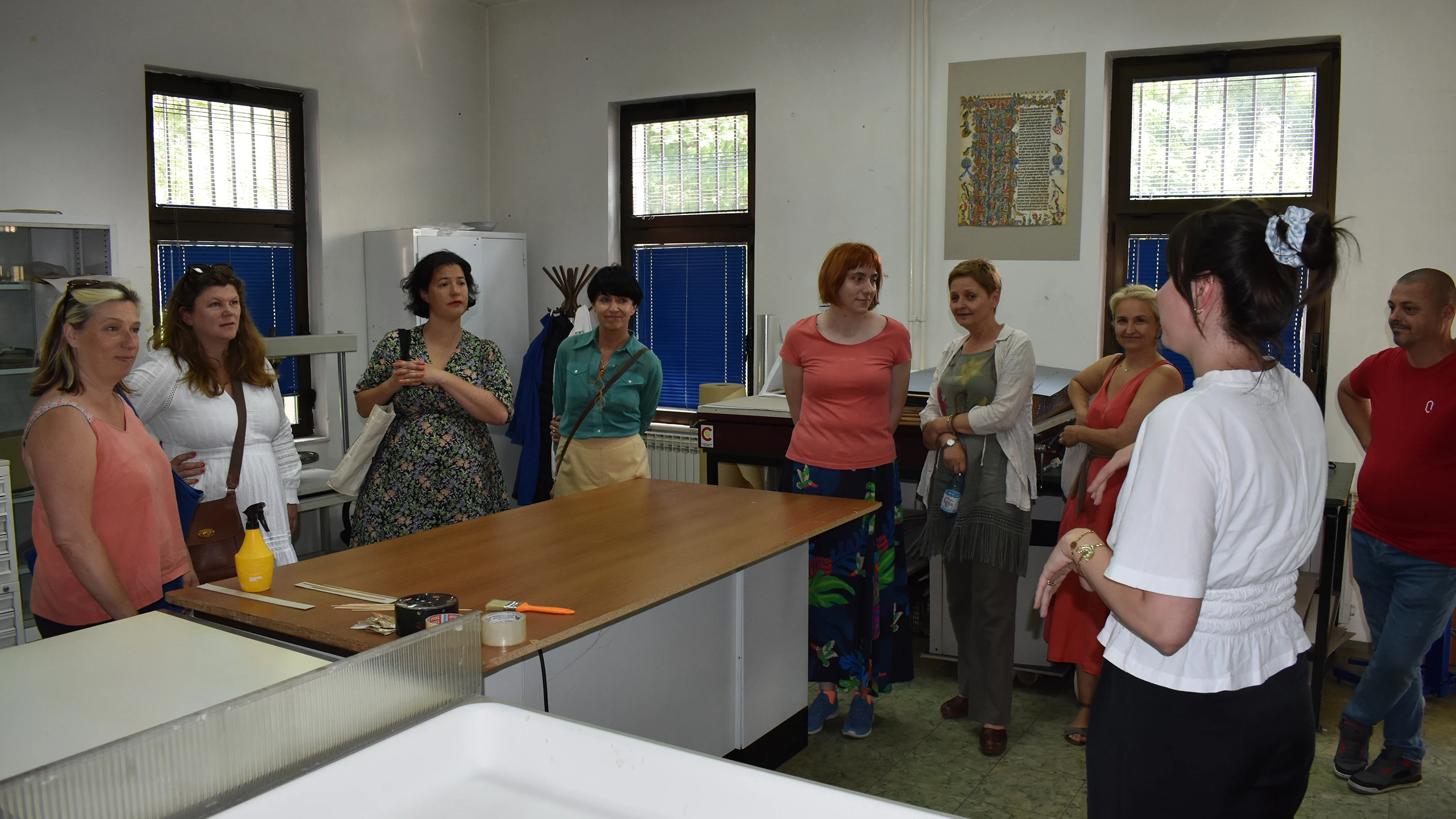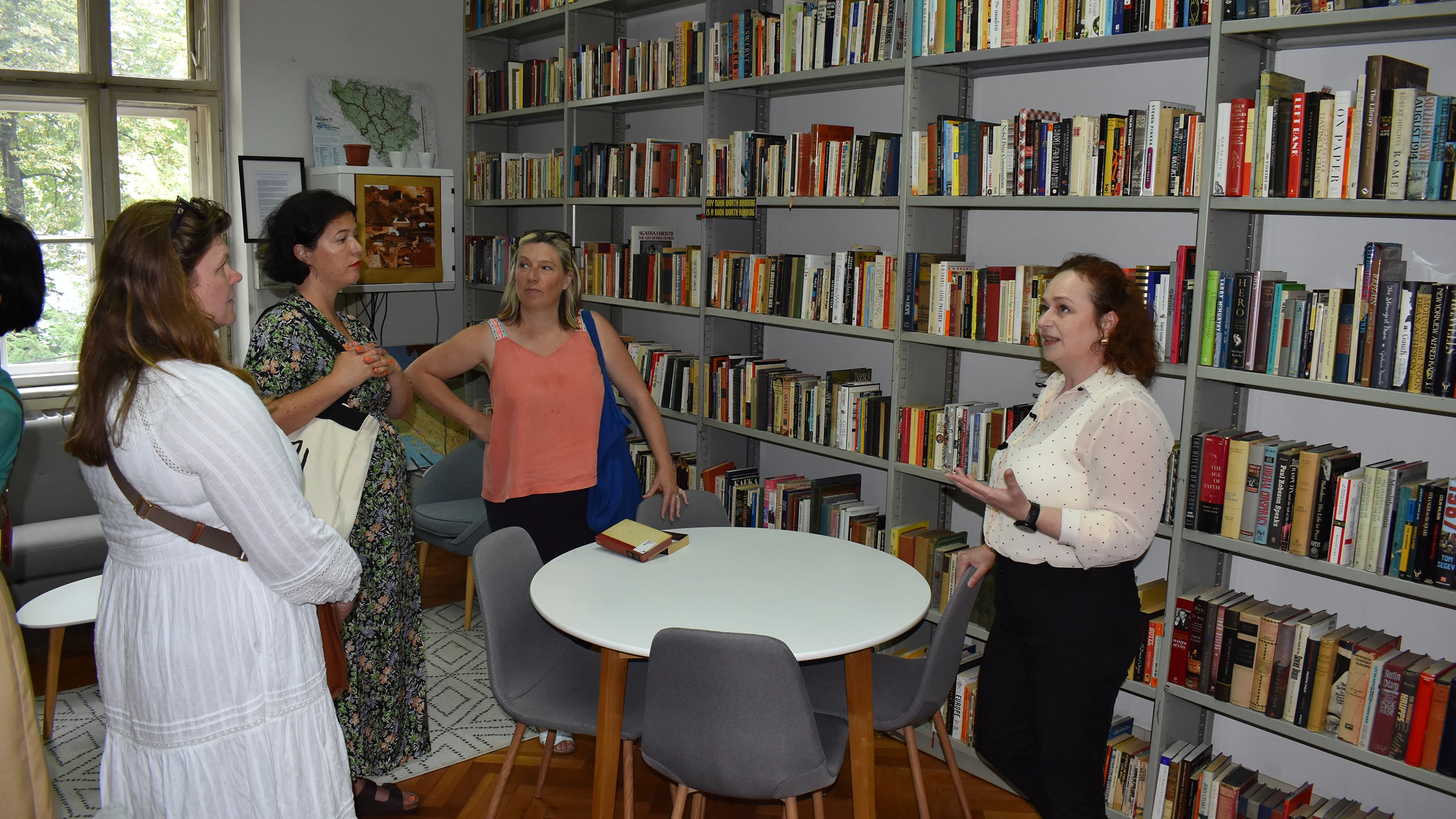 U okviru Programa „Sarajevo Fellowship“ u čijem fokusu je Nacionalna i univerzitetska biblioteka Bosne i Hercegovine, u petak, 20.06.2025. godine, posjetile su nas predstavnice britanskih izdavačkih kuća i agencija: Louisa Joyner (Faber), Sophie Lambert (c+w), Rebecca Servadio (London Literay), Katie Espiner (Hachette UK). Gošće su obišle Specijalne zbirke, nacionalni spomenik Bosne i Hercegovine koji je integralni dio Nacionalne i univerzitetske biblioteke Bosne i Hercegovine, odjele periodike i kataloga te Centar za konzervaciju i restauraciju.