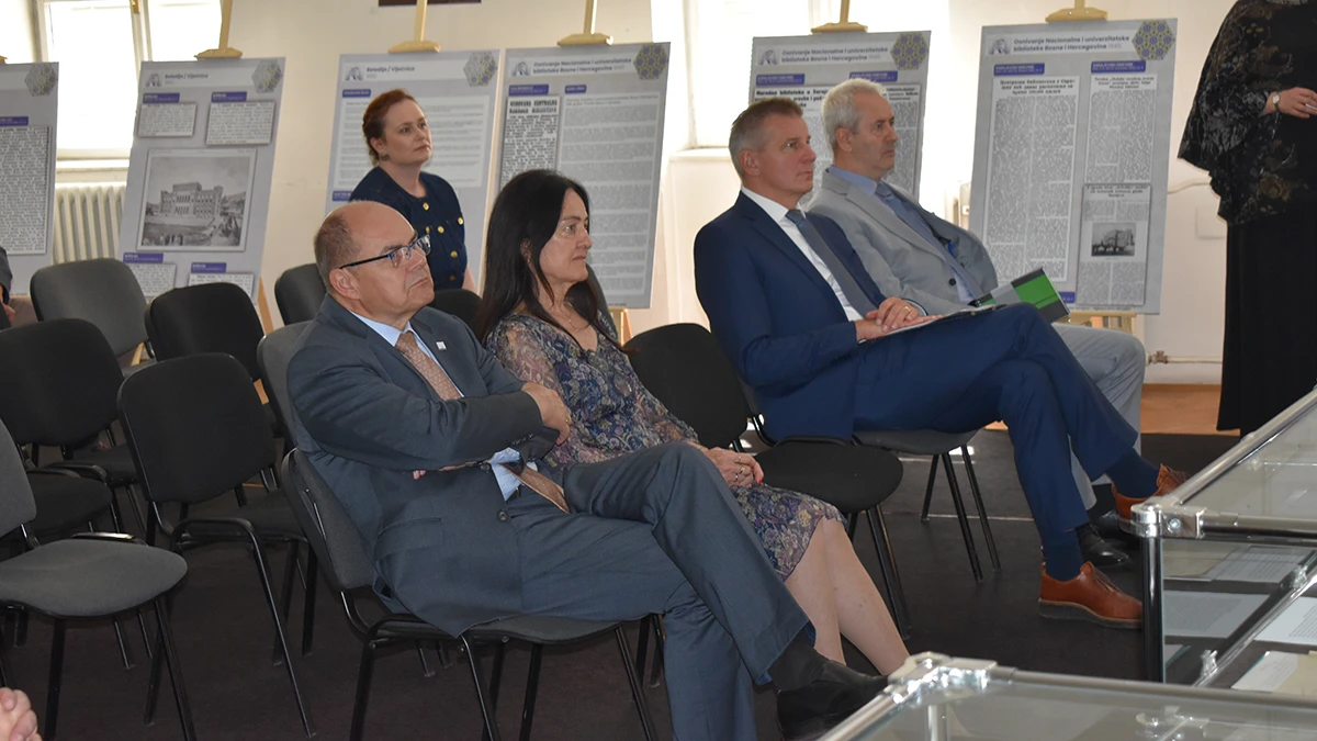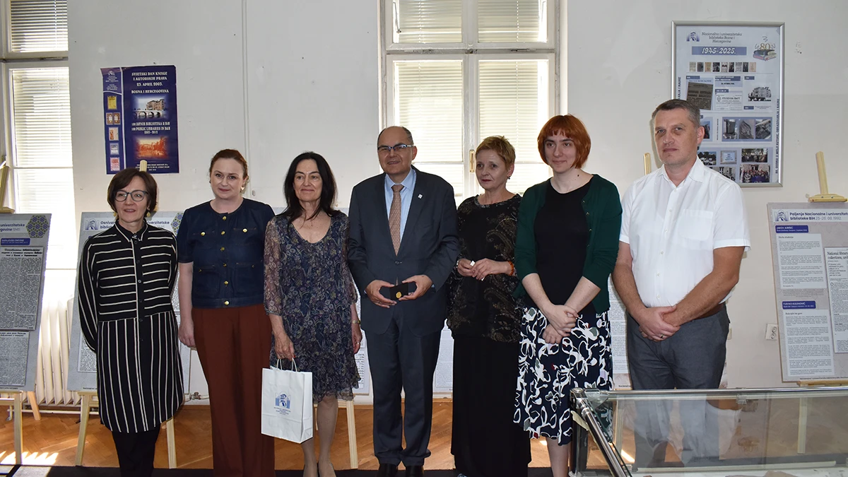 Delegacija je pogledala video “U plamenu sjećanja”. H.E. Schmidt primio je, u ime kolektiva Nacionalne i univerzitetske biblioteke Bosne i Hercegovine, i počasnu člansku kartu .